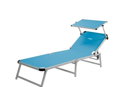 Hochwertige Sonnenliege mit stabilem, klappbarem Dreibeingestell aus eloxiertem Aluminium. Die Rückenlehne und das Sonnenschutzdach sind verstellbar. Durch ihr geringes Packmaß und den mitgelieferten Trageriemen ist die Liege leicht zu transportieren. verstellbar und klappbar Technische Daten Farbe: blau Material: 70 % PVC Polyvinylchlorid, 30 % PES Polyester belastbar bis: 120 kg Maße (L x B x H): 192 × 67 × 30 cm Packmaß: 77 x 19 x 64,5 cm Gewicht: 6,4 kg Lieferumfang: Sonnenliege