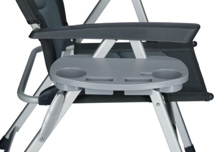 Großer Getränke- und Utensilientisch aus witterungsbeständigem Kunststoff. Paßt auf den Kerry Camper, Kerry Slim, sowie auf zahlreichen handelsüblichen Klappstühlen. aus witterungsbeständigem Kunststoff zum Befestigen einfach seitlich in das Stuhlgestell einhängen Technische Daten: Material: Kunststoff Farbe: grau Maße (B x T x H): 27 × 23 × 2,9 cm Gewicht: 400 g