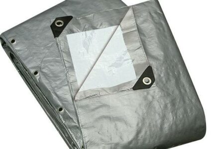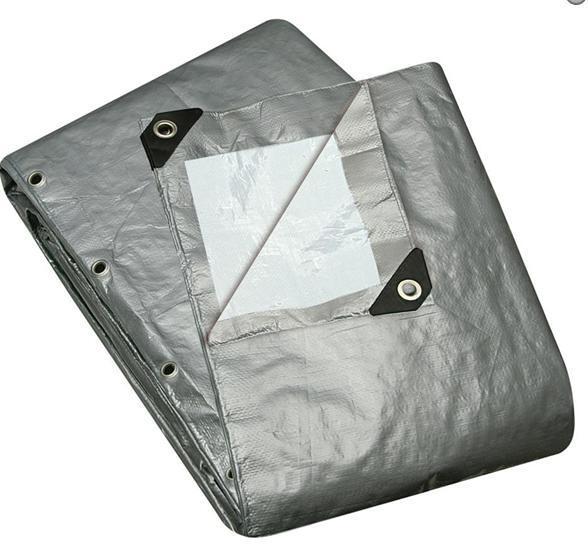 PE-Schutzplane Beidseitig laminiert Verstärkter Rand mit eingeschweißter Kordel Kunststoffverstärkte Ecken Metallösen rundherum Gewebestärke 170 g/m² Größe 400 x 500 cm Farbe Silber