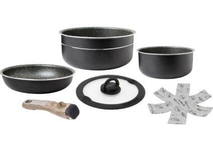 Topfset-Kollektion aus Aluminium mit hochwertiger Antihaft-Beschichtung. Kompakt verstaubar, modernes Design, hygienisch, zuverlässig, unempfindlich gegenüber Temperaturschocks und korrosionsfest. Das neue Vacublock-System sichert Ihre Töpfe und Pfannen während der Fahrt und ich die perfekte Lösung für Freizeitfahrzeuge und Boote. einfache und intuitive Bedienung reduziert die Möglichkeit von Kratzern auf der Antihaftbeschichtung beseitigt lästige Geräusche beim Fahren Alle Teile lassen sich ineinander…