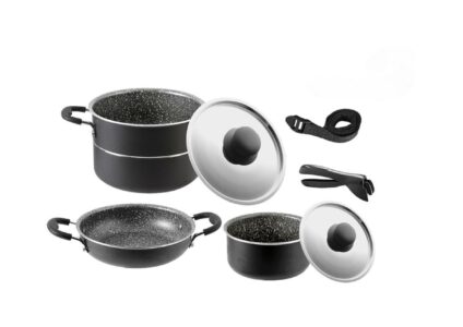 Topfset-Kollektion aus Aluminium mit hochwertiger Antihaft-Beschichtung. Kompakt verstaubar, modernes Design, hygienisch, zuverlässig, unempfindlich gegenüber Temperaturschocks und korrosionsfest. einfache und intuitive Bedienung reduziert die Möglichkeit von Kratzern auf der Antihaftbeschichtung beseitigt lästige Geräusche beim Fahren alle Teile lassen sich ineinander verstauen PFOA freie Antihaftbeschichtung für alle Herdarten, außer Induktion Technische Daten: Farbe: schwarz Material: Aluminium…