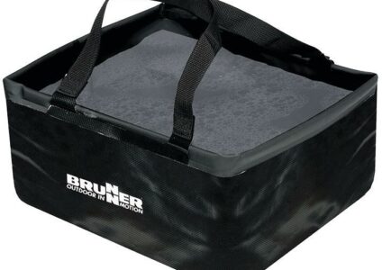 Faltschüssel mit versteiftem Rand. Hergestellt aus beidseitig beschichtetem, wasserdichtem Polyestergewebe. Alle Nähte sind verschweißt. Mit Tragegriffen. Technische Daten: Material: 100 % PVC Polyvinylchlorid Volumen: 12 L Maße (B x T x H): 29 × 29 × 16 cm Packmaß: 30 × 30 × 3 cm Gewicht: 280 g