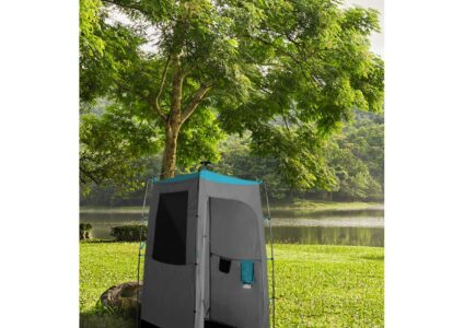 Vielseitig einsetzbares Sanitär- und Mehrzweckzelt mit stabilem Stahlgestänge, herausnehmbarem Boden und verschliessbarem Gazefenster. Inkl. verschiedener funktioneller Detaillösungen und einer praktischen Packtasche. Technische Daten: Wassersäule: 2.000 mm Außenzelt: 68D Polyester PU (100% Polyester) Gestänge: Stahl Ø 16 mm Maße: 140 x 140 x H205 cm Gehäuse: 80 x 41 cm Gewicht: 6 kg
