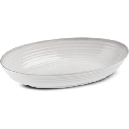 Formschöne, ovale Servierschale aus Stonetouch-Melamin zum Servieren von kalten und warmen Speisen. Mit Antislip-Ring. In einer schönen Geschenkbox verpackt. langlebig und robust glänzt wie Porzellan mit Anti-Slip spülmaschinengeeignet Technische Daten: Maße: 33 x 23 x H7 cm Material: Melamin