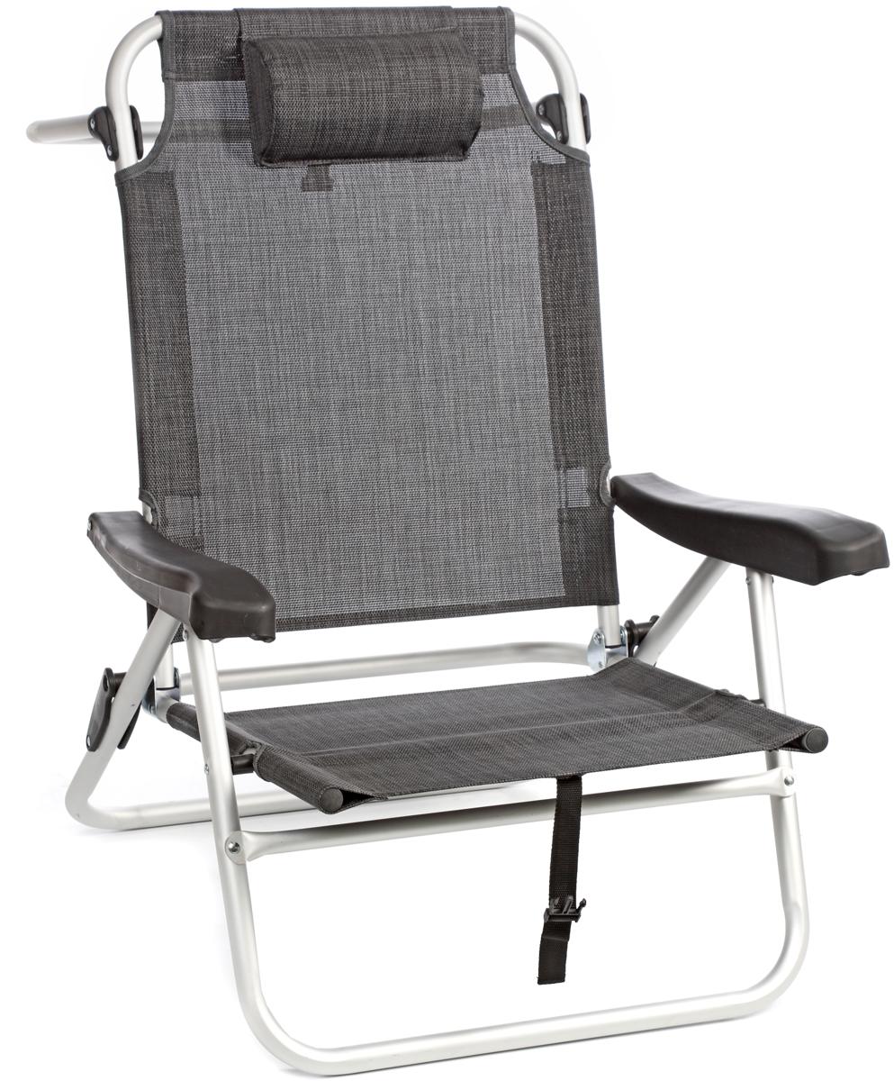 Aluminium-Strandstuhl mit 4-fach verstellbarer Rückenlehne und Nackenkissen für zusätzlichen Komfort. Leicht und einfach zu transportieren. Perfekt zum Entspannen und Genießen der Sonne am Pool oder am Strand. Technische Daten: Maße: 64 x 63 x H28/82 cm Packmaß: 74 x 66 x 12 cm Gewicht: 3.6 kg Gestell: Aluminium Polster: 100% Textylene 4-fach verstellbarer Rückenlehne Belastbar bis: 110 kg Material: Syntex Plus Farbe: anthrazit Lieferumfang: 1 Strandstuhl