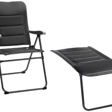Skye 3D Compact Campingstuhl inklusive Beinauflage – Nur bei Camping Wagner !Platzsparender Alu-Klappstuhl mit fester Rückenlehne und Bügelfuß. Niedriglehner mit Bezug aus komfortablem 3D-Gewebe.sehr leicht und platzsparendBezug atmungsaktivem 3D-Mesh-GewebeTechnische Daten Stuhl:Maße: 65 x 57 x H40/95 cmPackmaß: 58 x 85 x 9 cmGewicht. 3.3 kgMaterial: AluminiumBezug aus komfortablem, atmungsaktivem 3D-Mesh-Gewebe (100 % Polyester)Belastbar bis: 120 kgTechnische Daten Beinauflage:Farbe: schwarzMaterial:…