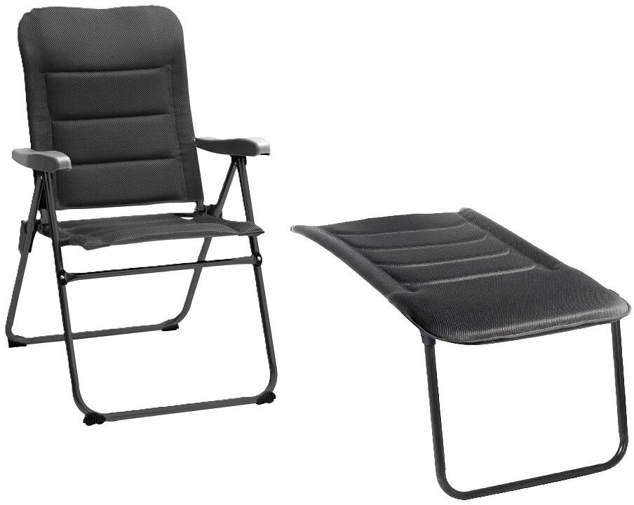 Skye 3D Compact Campingstuhl inklusive Beinauflage – Nur bei Camping Wagner !Platzsparender Alu-Klappstuhl mit fester Rückenlehne und Bügelfuß. Niedriglehner mit Bezug aus komfortablem 3D-Gewebe.sehr leicht und platzsparendBezug atmungsaktivem 3D-Mesh-GewebeTechnische Daten Stuhl:Maße: 65 x 57 x H40/95 cmPackmaß: 58 x 85 x 9 cmGewicht. 3.3 kgMaterial: AluminiumBezug aus komfortablem, atmungsaktivem 3D-Mesh-Gewebe (100 % Polyester)Belastbar bis: 120 kgTechnische Daten Beinauflage:Farbe: schwarzMaterial:…