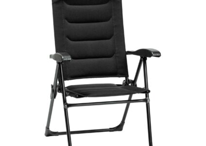 Hochwertiger klappbarer Campingstuhl mit hoher, in 8 Positionen verstellbarer Rückenlehne und klassischem U-förmigen Bügelfuss-Gestell, das auch auf weichem Boden für einen sicheren Stand spricht. Das kompakte, klappbare Gestell ist aus pulverbeschichtetem Aluminiumrohr gefertigt, das in Kombination mit der strapazierfähigen 3D-Gewebe-Sitzfläche einen stabilen und sehr bequemen Sitz gewährleistet. Klappbares Gestell aus pulverbeschichtetem Aluminium 3Durafeel-Stoffsitz 8-fach verstellbare Rückenlehne…