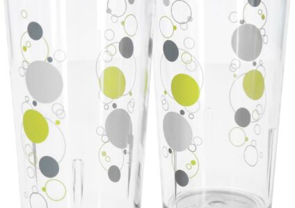 Formschönes Trinkglas aus SAN, ein transparenter und steifer Kunststoff, ist lebensmittelecht, weitgehend spülmaschinengeeignet und somit für den Küchenbedarf bestens geeignet. lebensmittelecht spülmaschinengeeignet langlebig mit Anti Slip im Boden Technische Daten Material: SAN Volumen: 400 ml Lieferumfang: 2 Trinkgläser