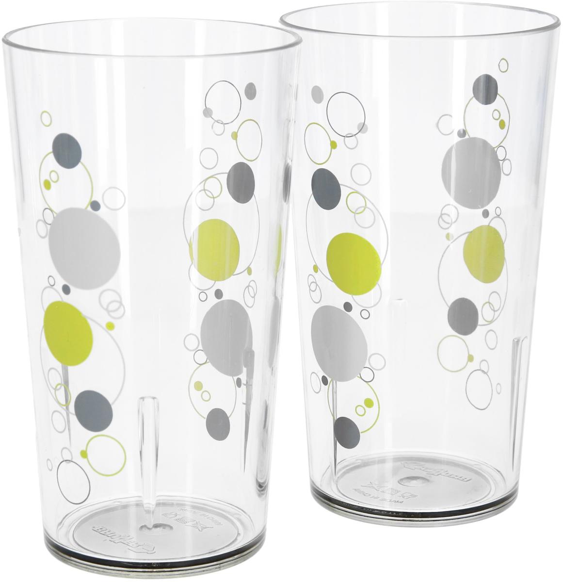 Formschönes Trinkglas aus SAN, ein transparenter und steifer Kunststoff, ist lebensmittelecht, weitgehend spülmaschinengeeignet und somit für den Küchenbedarf bestens geeignet. lebensmittelecht spülmaschinengeeignet langlebig mit Anti Slip im Boden Technische Daten Material: SAN Volumen: 400 ml Lieferumfang: 2 Trinkgläser