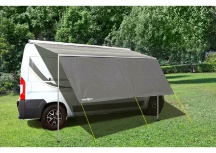Komfortable Sonnensegel aus UV-beständigem Kunstgewebe. Rundum gesäumt, mit Ösen. Einfache Montage an der Kederleiste von Wohnwägen, Wohnmobilen, Kastenwägen oder Bussen. Geeignet für Fiamma-, Thule- und Omnistor-Markisen. Heringe und Abspannleinen sind im Lieferumfang enthalten. Technische Daten: Gewicht: 1,53 kg Material: 100% PE Keder: Double Connection 5/7 mm Maße: 390 x H190 cm