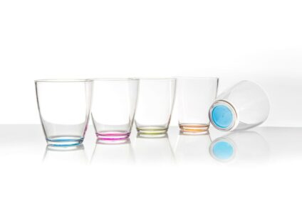 Farbenfrohe, stapelbare Trinkgläser mit Anti Slip Boden aus SAN, ein transparenter und steifer Kunststoff, ist lebensmittelecht, weitgehend spülmaschinengeeignet und somit für den Küchenbedarf bestens geeignet. lebensmittelecht spülmaschinengeeignet mit Anti Slip Boden Technische Daten: Volumen: 200 ml Material: SAN Lieferumfang: 4 Trinkgläser