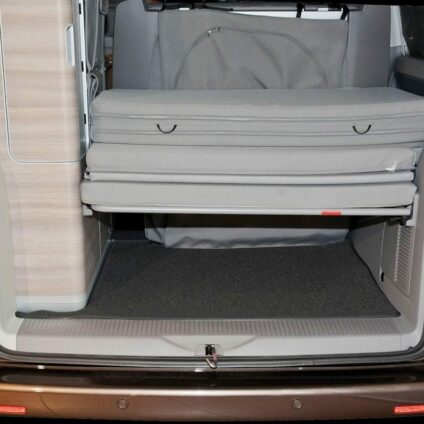 Strapazierfähiger Laderaumteppich für VW T5 ( lange Version) Schutz vor Verschmutzung Einfach und schnell zu reinigen Einteilig mit Harzbeschichtung auf der Rückseite Verlängerung zwischen den Sitzen Bitte beachten: Die Abbildung kann je Fahrzeug Typ abweichen