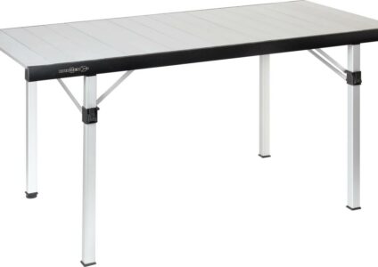 Dieser falt- und rollbare Aluminiumtisch mit neuem Untergestell, gründet auf der klassischen Bauweise mit 4 senkrechten Standbeinen und ist der perfekte Begleiter für unterwegs. Dank des mitgelieferten Packsacks, kann man den Tisch einfach verstauen und transportieren. Der Tisch überzeugt auch durch seine spaltenfreie Tischplatte, welche mit einem speziellen Verriegelungsmechanismus am Tischgestell befestigt wird. Das zeitlose Design kommt nicht aus der Mode und kann ideal mit anderen, bereits…