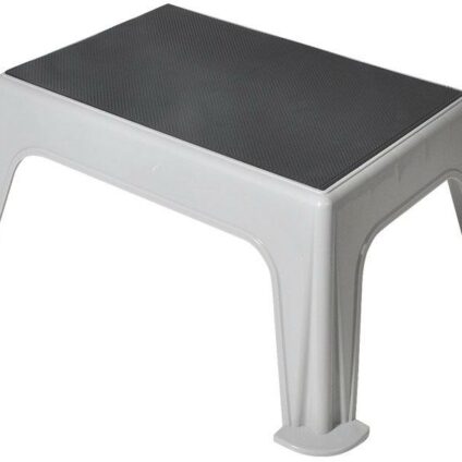 Kunststofftrittstufe für Freizeitfahrzeuge mit integrierter Antirutschmatte. Material: verstärkter Kunststoff Belastbarkeit: 150 kg Größe 38,5 x 26 x 22 cm Gewicht: 1,45 kg