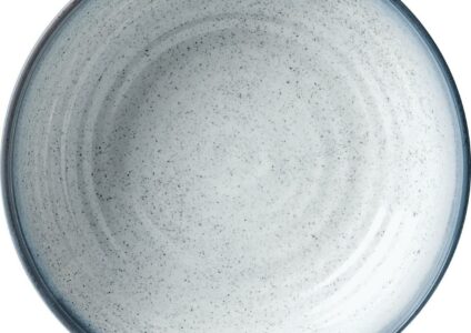Geschirr im klassischen Design Die Serie ist mit Antislip-Ring ausgestattet und daher bestens geeignet für den Einsatz in Freizeitfahrzeugen. Technische Daten: Dekor: Tuscany Material: Melamin Farbe: grau, blau Durchmesser: 21 cm