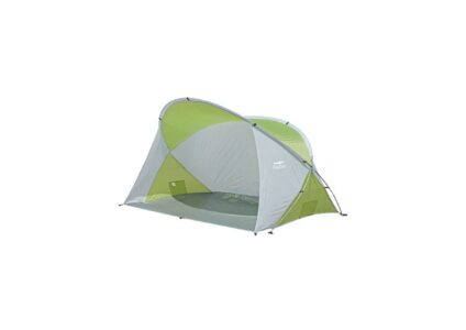Moderne, schnell aufbaubare Strandmuschel mit Platz für 2-3 Personen.Sonnen- und Windschutz an Stränden. Stabile Konstruktion mit robustem Fiberglasgestänge und praktischer Bodenplane. Technische Daten: Material: 100 % Polyester Gestänge: Fiberglas Abmessungen (BxTxH): 200 x 150 x 130 cm Packmaß: ø 12 x 59 cm Gewicht: 1,9 kg Farbe: grün/grau Lieferumfang: Strandmuschel inklusive Montagezubehör und Packsack.
