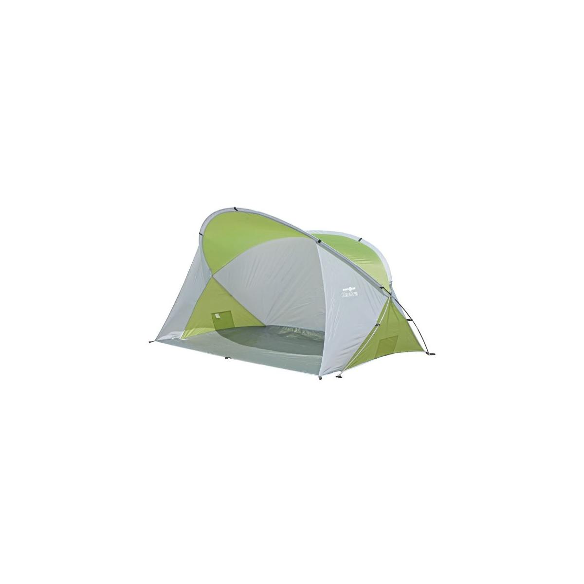 Moderne, schnell aufbaubare Strandmuschel mit Platz für 2-3 Personen.Sonnen- und Windschutz an Stränden. Stabile Konstruktion mit robustem Fiberglasgestänge und praktischer Bodenplane. Technische Daten: Material: 100 % Polyester Gestänge: Fiberglas Abmessungen (BxTxH): 200 x 150 x 130 cm Packmaß: ø 12 x 59 cm Gewicht: 1,9 kg Farbe: grün/grau Lieferumfang: Strandmuschel inklusive Montagezubehör und Packsack.