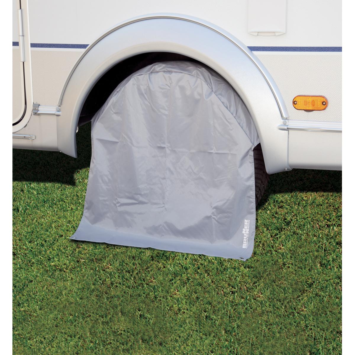 Radhüllen zum Schutz der Caravan- und Reisemobilreifen. Technische Daten: Material: 100% Polyester Maße: Für Reisemobilreifen (16” – 18”) Lieferumfang: 1 Radhülle