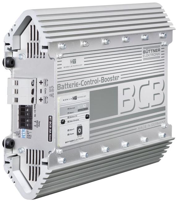 Lader/Booster/Pulser in einem Gerät Der Batterie-Control-Booster MT BCB 25 / 20 von Büttner Elektronik ist die ultimative 3-in-1-Lösung zur optimalen Ladung der Bordbatterie(n). Er wird einfach parallel zur bereits vorhandenen Ladetechnik im Reisefahrzeug integriert und lädt mit zusätzlich 20 A am 230V-Netz und während der Fahrt mit 25 A mit modernster IUoU-Kennlinie. Einmal eingestellt auf den Batterietyp (Flüssig-Säure / Gel / AGM) übernimmt der MT BCB 25 / 20 die komplette Ladeüberwachung. Am 230…