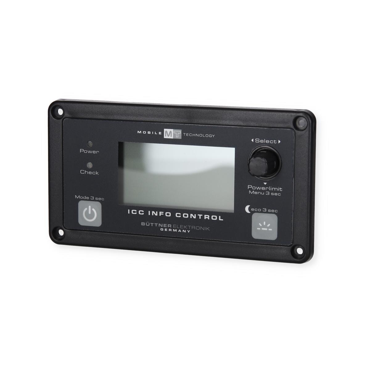 Das digitale Einbau-Bedienteil für die Innenraum-Überwachung der Wechselrichter/Lade-Kombination ICC 1600 und ICC 3000 mit vielen Einstellmöglichkeiten. Im Display wird Ladestrom, Spannung, Batterietemperatur und die momentane Ladesituation angezeigt. Je nach Betriebsmodus kann der angeschlossene ICC dann auch Ein/Aus geschaltet bzw. in den Nacht- oder Eco-Modus versetzt werden. Des Weiteren ist es möglich, die Eingangsstrom-Begrenzung an die vorhandene Absicherung des 230 V-Netzeingangs vom Innenraum…