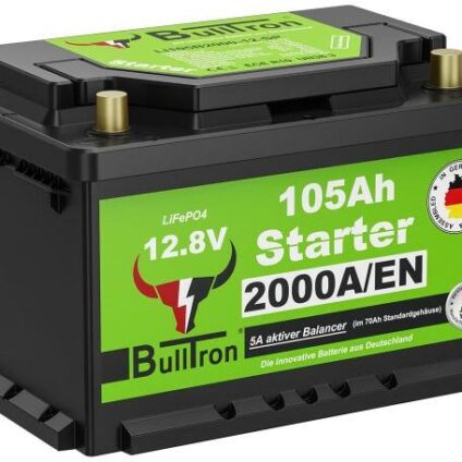 Die BullTron® LiFePO4 Starterbatterie ist die zuverlässige Alternative zu herkömmlichen Starterbatterien auf Blei-, GEL- oder AGM-Basis. Durch modernste Lithium-Eisenphosphat-Technologie bietet sie eine beeindruckende Kombination aus Leistung, Langlebigkeit und Gewichtsersparnis. Das Startverhalten bleibt auch bei extremen Minusgraden konstant stark – mit Startströmen von bis zu 2000 A (modellabhängig) und einer Ladefähigkeit bis -20 °C. Gleichzeitig überzeugt die Batterie durch eine sehr geringe…