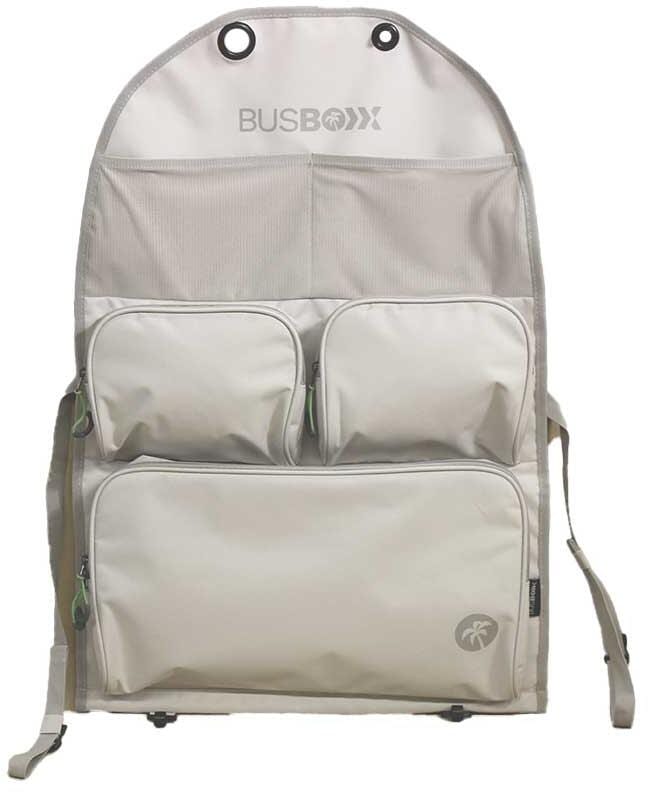 BUS-BOXX utilityBOXXDie utilityBOXX wurde für die Vordersitze konzipiert. Zum Anbringen der Tasche wird die Kopfstütze entnommen, die Tasche über die Metallstangen gezogen und unten zusätzlich mit Haken an der Sitzkonsole befestigt. Der Lochabstand zwischen den beiden Löchern, in die die Kopfstütze eingeschoben wird, beträgt 150 mm (Abstand von Lochmitte zu Lochmitte). Die Tasche dient als Organizer & Stauraum für Kleinigkeiten, die sonst schnell im Bus verloren gehen können. Hier kannst du z.B. Bücher,…