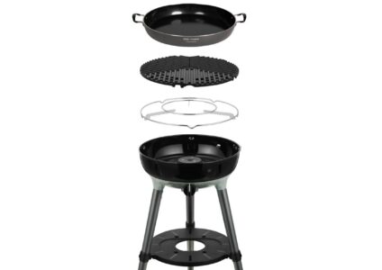 Der Carri Chef präsentiert sich als kompakter Gasgrill mit einfacher Montage. Das Untergestell lässt sich mühelos auseinanderschrauben, und dank der mitgelieferten Transporttasche kann der Grillo Chef problemlos verstaut und überallhin mitgenommen werden. Das neueste Modell zeichnet sich durch eine automatische Piezozündung aus, während der Grillrost mit der CADAC GreenGrill-Beschichtung ausgestattet ist – eine langlebige und umweltfreundliche Keramikbeschichtung, die leicht zu reinigen ist. Mithilfe des Topfständers kann das Modell auch als Kocher verwendet werden, ideal zum Kochen von Nudeln oder Zubereiten von Saucen. Die Zusammenstellung deines Grills wird durch verschiedene optionale Zubehörteile wie Pizzastein oder Paella Pfanne perfekt ergänzt.