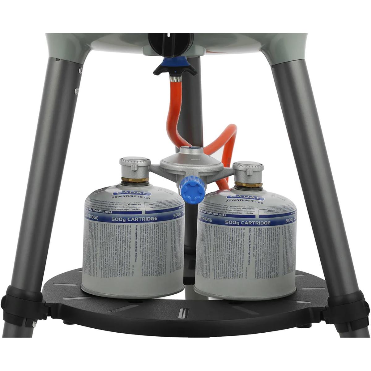 Der Carri Chef wird mit einer Gasflasche betrieben, kann jedoch auch alternativ mit einer Gewindekartusche mit EN417-Druckminderer oder dem Cadac Power Pak genutzt werden.