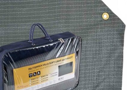 Camp 4 Villa Soft ZeltteppichUnverwüstliche Kunststoff-FaserSpeziell ummanteltStrapazierfähig und PflegeleichtVerrottungsfestUV-beständigZuschneidbarBarfuß sehr angenehmTechnische DatenMaße (B x T): 300 x 700 cmMaterial:70% PVC, 30% TextileneLieferumfang: Zeltteppich, Tragetasche