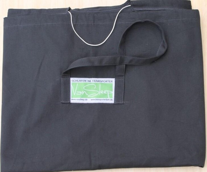 Transporttasche aus festem, strapazierfähigem Stoff zur sicheren Aufbewahrung der Fahrerhaus-Matratze CampSleep. Ausgestattet mit 2 Trageschlaufen und Klettverschluß.