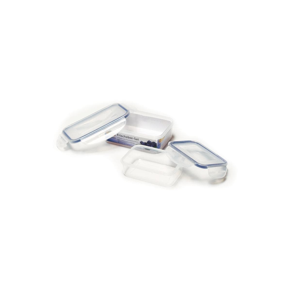 Für jedes Utensil die richtige Box. Diese Frischhalteboxen mit Schnellverschluss an allen Seiten sind optimal abgedichtet und halten Lebensmittel lange frisch. lebensmittelecht und BPA-freispülmaschinen-, mikrowellen- & gefrierfachgeeignetleicht verstaubar und stapelbarSchnellverschluss an allen 4 SeitenTechnische Daten:Maße: 135 x 100 x 120 mmVolumen: 240 ml / 500 mlMaterial: Kunststoff / SilikonLieferumfang:1 Frischhaltebox 240 ml1 Frischhaltebox 500 ml