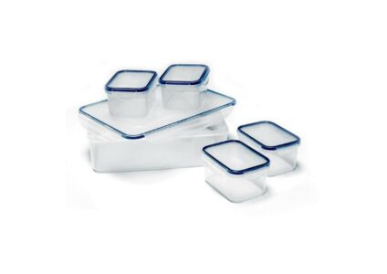 Für jedes Utensil die richtige Box. Diese Frischhalteboxen mit Schnellverschluss an allen Seiten sind optimal abgedichtet und halten Lebensmittel lange frisch. lebensmittelecht und BPA-freispülmaschinen-, mikrowellen- & gefrierfachgeeignetleicht verstaubar und stapelbarSchnellverschluss an allen 4 SeitenTechnische Daten:Material: Kunststoff / SilikonLieferumfang:4 Frischhalteboxen 0,43 L (13,5 x 10 x 6,5 cm)1 Frischhalteboxen 3,7 L (30,5 x 23 x 9 cm)