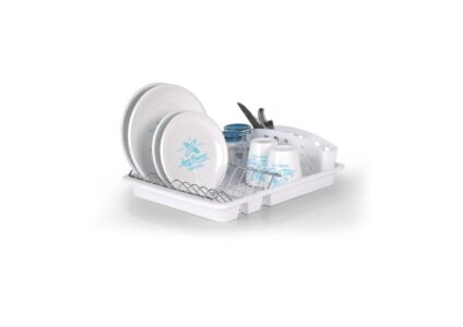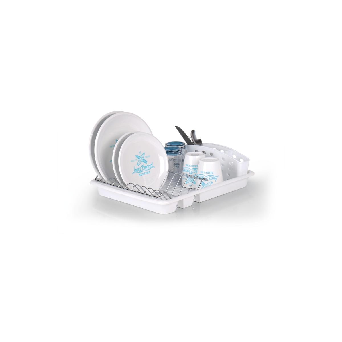 Geschirrtrockner mit Aufnahme für Teller und Besteck. Technische Daten: Material: Polypropylen Maße geöffnet: 42 x 32 x 12 cm gefaltet: 42 x 32 x 4,5 cm Gewicht: 600 g