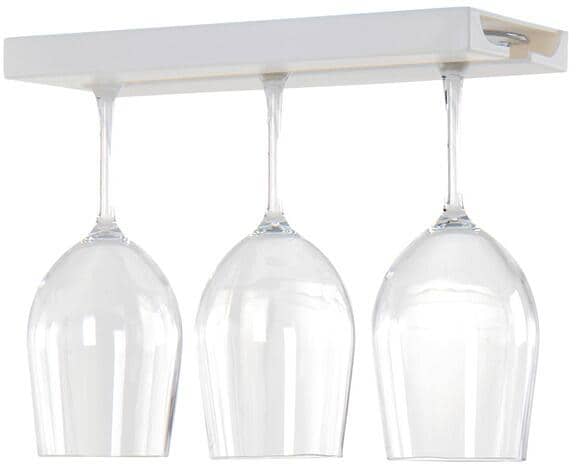 Halter für Stielgläser für z.B. Wein-/Sekt-/Cognacgläser. Für 2-3 Gläser mit einem Fuß von max. Ø86 mm. Gläser einfach einhängen Technische Daten: Farbe: weiß Breite: 335 mm Tiefe: 50 mm Höhe: 33 mm Material: Kunststoff Gewicht: 15 g Lieferumfang: 1 Halterung 2 doppelseitige Klebetikette 1 Tube Kleber