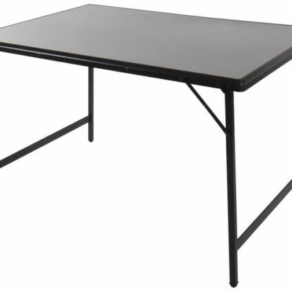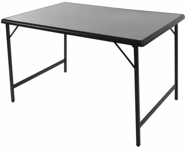 Leichter Campingtisch mit Aluminium beschichteter Tischplatte.wetterfeste Aluminium-Tischplattestabiles GestellBeine 5 cm höhenverstellbarTechnische Daten:Breite: 115 cmTiefe: 70 cmHöhe: 70 cmHöhenverstellbar: JaMaterial Gestell: AluminiumFarbe Gestell: schwarzMaterial Platte: AluminiumDekor Platte: grauBelastbarkeit: 30 kgGewicht: 6.8 kgPackmass-Länge: 120 cmPackmass-Breite: 80 cmPackmass-Höhe: 7 cm