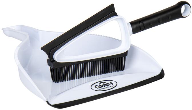 Silikon-Handfeger + Kehrschaufel Set. Handfeger mit Silikonborsten und Silikonlippe. Kehrschaufel mit Gummilippe. Handfeger kann im Griff der Kehrschaufel fixiert werden. Technische Daten: Maße: L31 x H5 x B22,5 cm Gewicht: 0,2 kg Material: Kunststoff, Silikon Farbe: weiß, schwarz