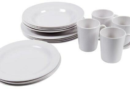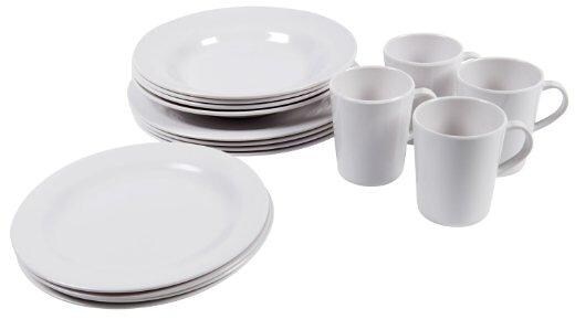 Das 16-teilige Melamin-Geschirrset für 4 Personen ist mit einem Antirutschring ausgestattet und somit ideal für Urlaub im Camper, Wohnwagen, Wohnmobil und v.a. auch auf Booten. lebensmittelecht mit Anti-Rutsch-Ring für sicheren Stand bei niedriger Temperatur spülmaschinengeeignet Hinweis: Nicht geeignet für Mikrowelle! Technische Daten: Gewicht: 2,74 kg Material: 100% Melamin Lieferumfang: 4 Essteller (Ø 26 cm) 4 Dessertteller (Ø 22 cm) 4 Suppenteller (Ø 24 cm) 4 Henkelbecher (0,3 L)