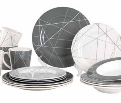 Rönne – Melamin Geschirrset in skandinavischer Schlichtheit für 4 Personen. lebensmittelecht temperaturbeständig bei max. 70°C für max. 2 Stunden spülmaschinengeeignet (bei niedriger Temperatur) Hinweis: Nicht geeignet für die Mikrowelle Technische Daten: Gewicht: 2,4 kg Material: Melamin Lieferumfang: 4 Dessertteller Ø20 cm 4 Essteller Ø25,5 cm 4 Suppenteller Ø21 cm, H 3,5 cm 4 Henkelbecher Ø6/9 cm, H 10 cm, 350 ml