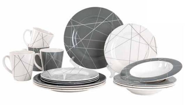 Rönne – Melamin Geschirrset in skandinavischer Schlichtheit für 4 Personen. lebensmittelecht temperaturbeständig bei max. 70°C für max. 2 Stunden spülmaschinengeeignet (bei niedriger Temperatur) Hinweis: Nicht geeignet für die Mikrowelle Technische Daten: Gewicht: 2,4 kg Material: Melamin Lieferumfang: 4 Dessertteller Ø20 cm 4 Essteller Ø25,5 cm 4 Suppenteller Ø21 cm, H 3,5 cm 4 Henkelbecher Ø6/9 cm, H 10 cm, 350 ml
