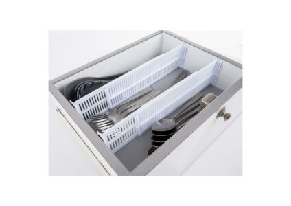 Variable Teilung der Schubladen für flexible Nutzung! 2er Set, bestehend aus 4 Trennwänden, für die Schublade. Jeweils 2 Trennwände werden variabel miteinander durch einklicken verbunden (von 27,5-51cm) und dann per Klebeetikett in die Schublade eingesetzt. Technische Daten: Material: Kunststoff Maße (je Trennwand): L 27,5 x H 8 cm Farbe: weiß, transparent Gewicht: ca. 0,2 kg Lieferumfang: 4 Trennwände 4 Enden mit Klebefixierung