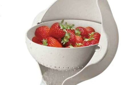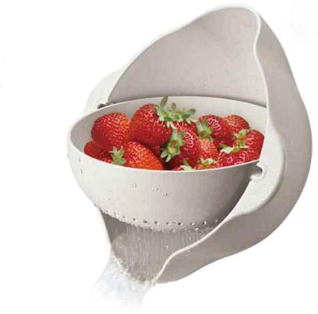 Set aus Schüssel und Sieb zum Waschen, Abschütten und Servieren. lebensmittelecht spülmaschinengeeignet auch einzeln verwendbar Technische Daten: Material: Weizen und Polypropylen Volumen: 1,3 L Maße: Ø 24,4 x 10,9 cm