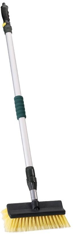 Stabile Ausführung mit praktischem Ein / Ausschalter und 19 mm Schlauchanschluss Mit Gardena-Anschluss Bürste mit weichen Kunststoffborsten. Mit teleskopierbarem Alurohr (120 – 180 cm)