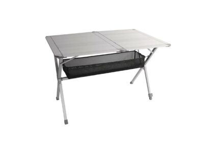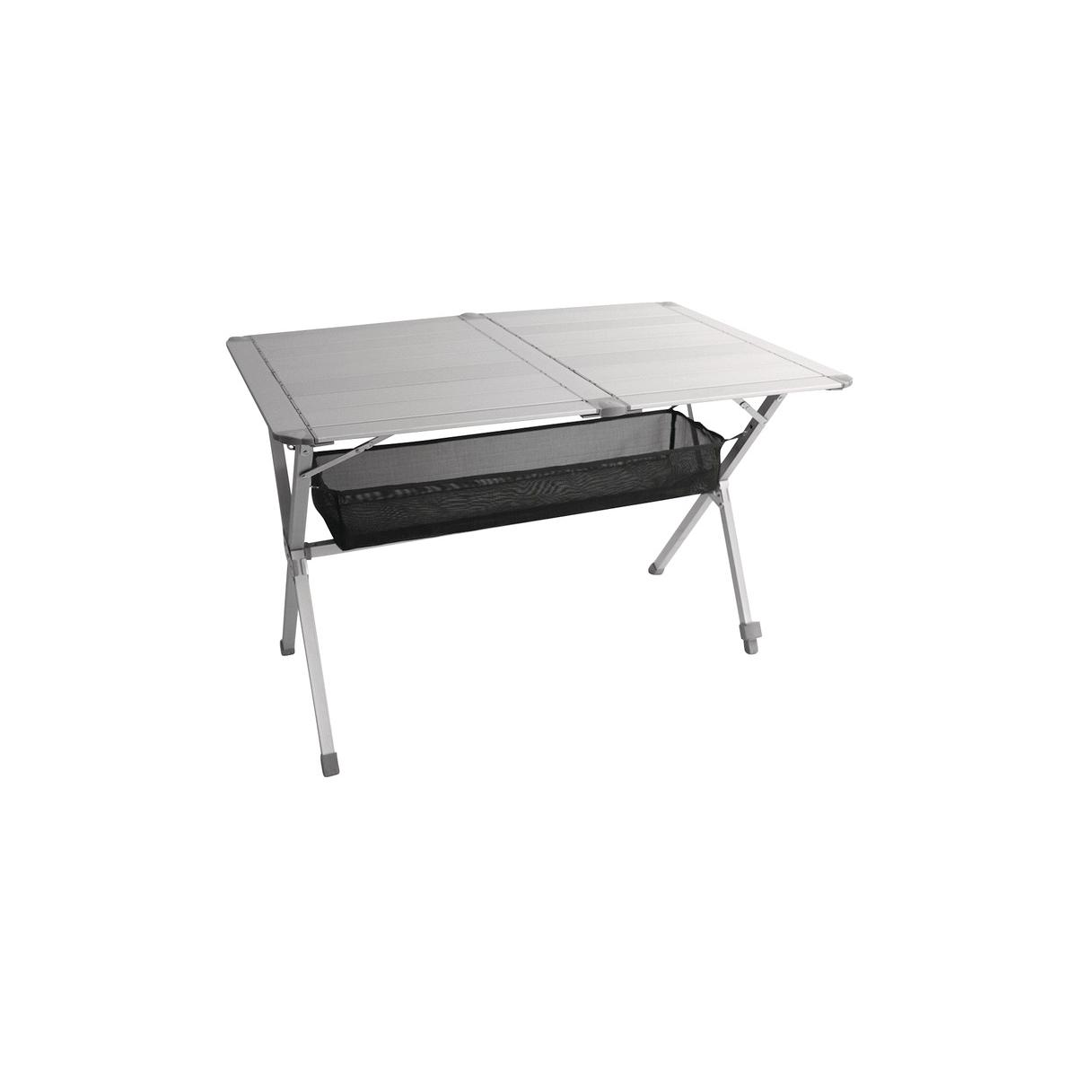 Mini Gewicht Platz für 4-6 Personen besonders stabil verstellbare Beine Utensilonetz aushängbar Tischhöhe: 70 cm Tischfläche: 140 x 80 cm Packmaß: L x B x H 136,5 x 22 x 9 cm Gewicht: ca. 6,4 kg Lieferumfang: 1 Tisch mit Transporttasche