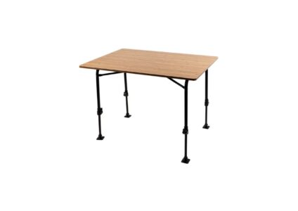 Der neue, leichte Camp4 Tjörn Campingtisch punktet mit einer wetterfesten Tischplatte im Bambus-Dekor. Die großen Tellerfüße verhindern das Einsinken und sorgen für einen stabilen Stand. Die mattschwarz lackierten Tischbeine sind mit einem Handgriff stufenlos höhenverstellbar von 51-71cm. Der Tisch ist mit 50kg überdurchschnittlich belastbar und bietet Platz für 2-4 Personen. wetterfeste Tischplatte stufenlos höhenverstellbar (51-71 cm) Tellerfüße verhindern das Einsinken Leichtgewicht – unter 4 kg…