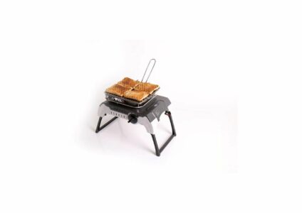 Toastaufsatz für Gaskartuschenkocher. Hitze wird gleichmäßig verteilt, so können Sie zwei bis vier Scheiben gleichzeitig toasten. Der Griff ist ausklappbar. Zusammengefaltet sehr kompakt verstaubar. praktische Ergänzung für Kartuschenkocher für 2 – 4 Scheiben Toast mit ausklappbarem Griff Technische Daten: Gewicht: 220 g Maße: 20 x 20 x 1 cm Material: Edelstahl Lieferumfang: 1 x Toaster