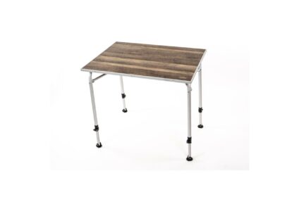 Der leichte Campingtisch Tyresta jetzt auch in kleiner Größe mit Tischplatte in trendiger Holz-Optik. Durch die Optimierung des Gestells durch das neue One Touch – System ist der Tisch schnell und einfach aufgebaut und rastet sicher ein für mehr Stabilität. wetterfeste Tischplatte mit edlem Holz-Dekor Tellerfüße verhindern das Einsinken mit einem Handgriff schnell höhenverstellbar One Touch-System für einfachen und schnellen Auf- und Abbau Technische Daten: Belastbar: max. 80 kg Tischplatte: 80 x 60 cm…
