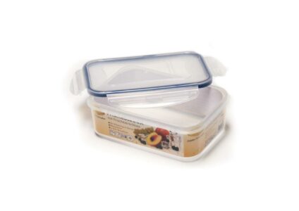 Die Frischhaltebox hat einen 4-fachen Schnellverschluss an allen Seiten und einen Silikonring im Deckel. mit Silikonringdichtung spülmaschinen-, mikrowellen- & gefrierfachgeeignet leicht zum Verstauen und stapelbar Schnellverschluss an allen 4 Seiten Technische Daten: Maße: 18,5 x 13 x 6,5 cm Volumen: 830 ml Material: Kunststoff / Silikon