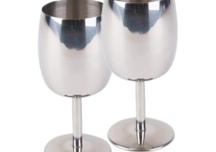 2 Weingläser (einwandig) aus rostfreiem Edelstahl (304) sorgen für entspannten Genuss und hält z.B. Weisswein länger kalt. lebensmittelecht geringes Gewicht geringe Höhe für kleines Staumaß leicht zu reinigen Technische Daten: Fassungsvermögen: 230 ml Höhe 14,5 cm Fuß: 6,3 cm Material: Edelstahl Lieferumfang: 2 Weinkelche