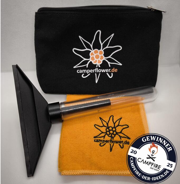 Jeder Camper kennt das Problem!Am Morgen ist die Frontscheibe innen im Camper beschlagen. Wie bekommt ihr die Frontscheibe schnell und streifenfrei trocken, bereit zur Weiterfahrt? Nutzt ihr aktuell Mikrofasertücher, die danach klatschnass sind, oder sperrige, stromfressende Fenstersauger? Hier ist die bessere Lösung:Mit dem Camperflower Frontscheiben Abzieher bekommt ihr die Frontscheibe in wenigen Sekunden trocken und streifenfreiDer Abzieher sammelt das Kondenswasser im hohlen Griff. Kein Wasser…